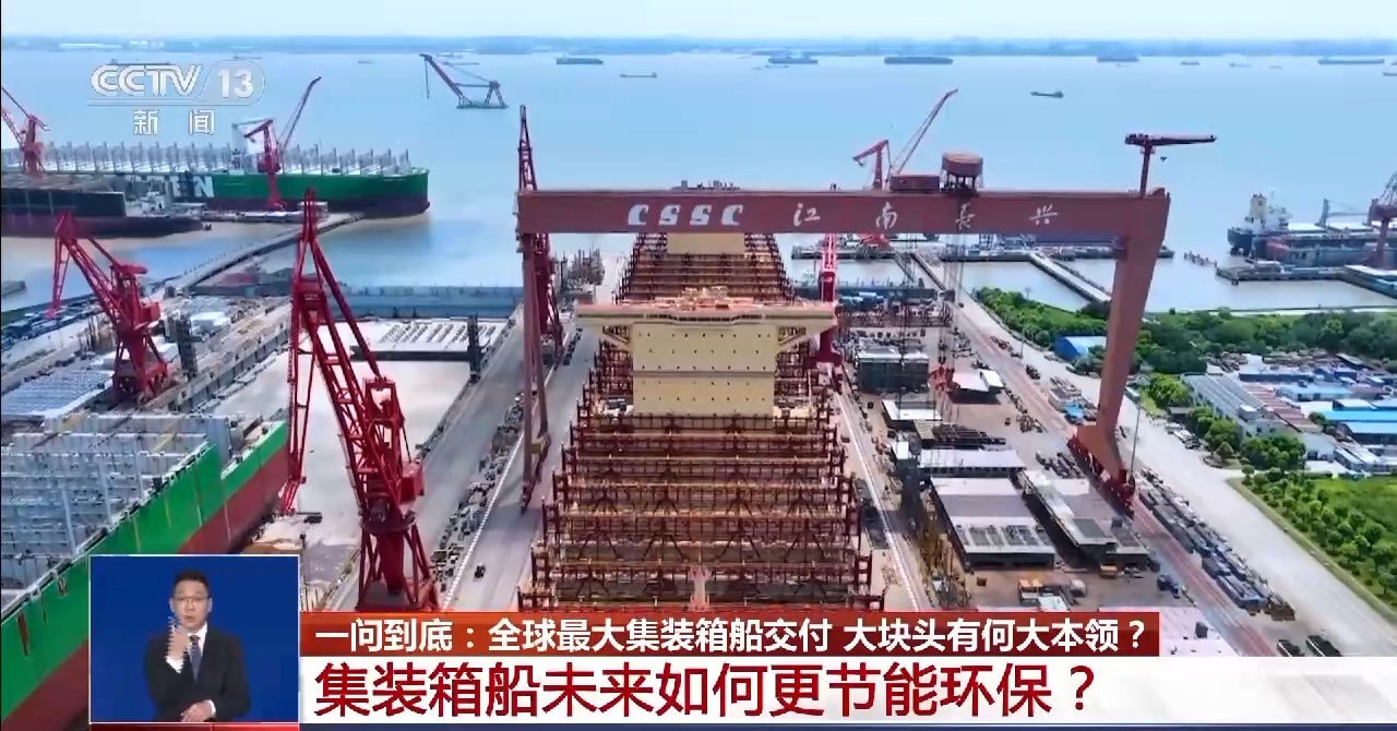 中国船舶沪东中华箱船副总建造师 刘学东:各种新型清洁能源,包括天然气、甲醇,都是未来的方向。我们现在能造出全球最大的集装箱船,意味着我们国家的材料工程、设计能力、工程管理能力,包括船厂的运营能力,都达到了一个更高层次。