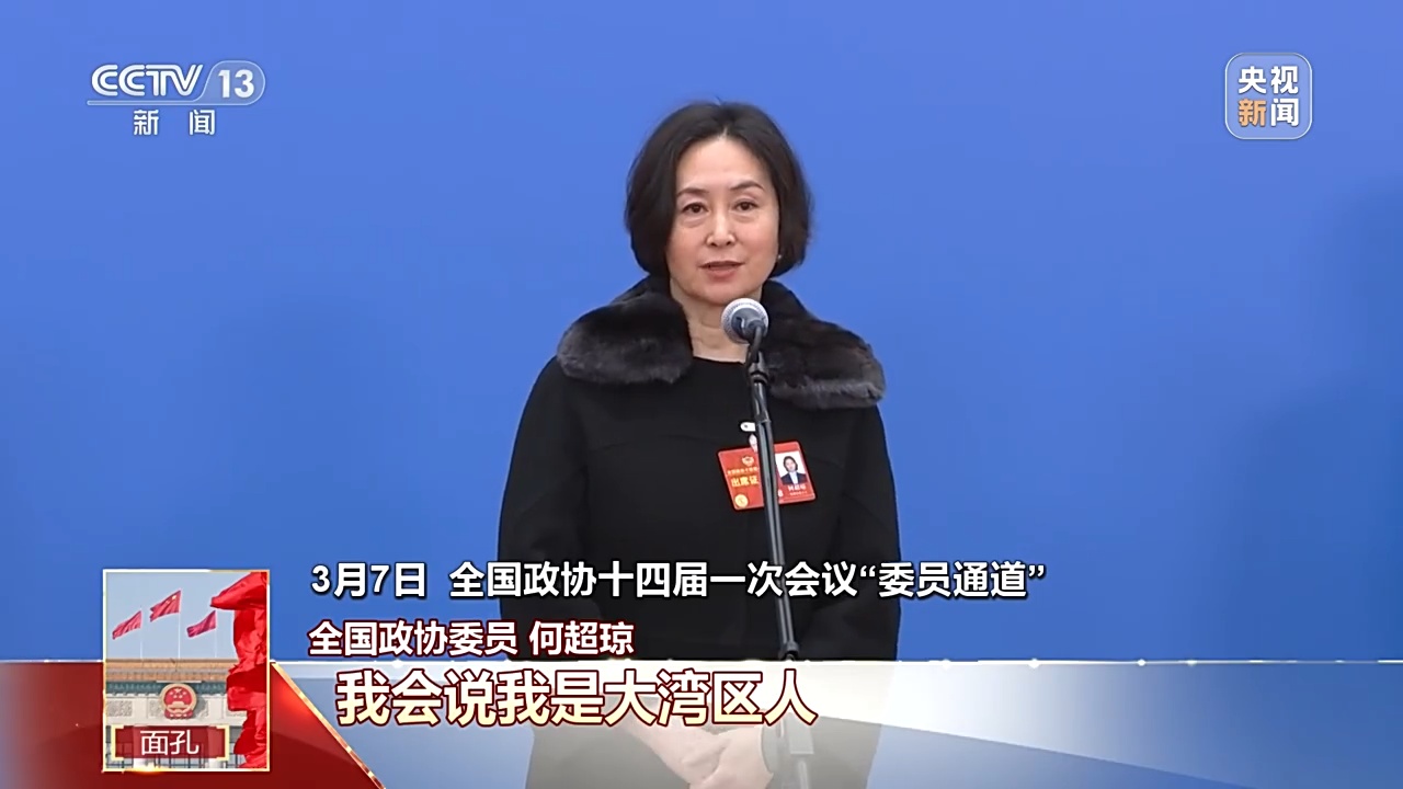 来自香港的何超琼今年是第一次以全国政协委员的身份出席“两会”,委员通道上她一句“我是大湾区人”的表述,也让大家感受到了正在快速发展的粤港澳大湾区的吸引力。