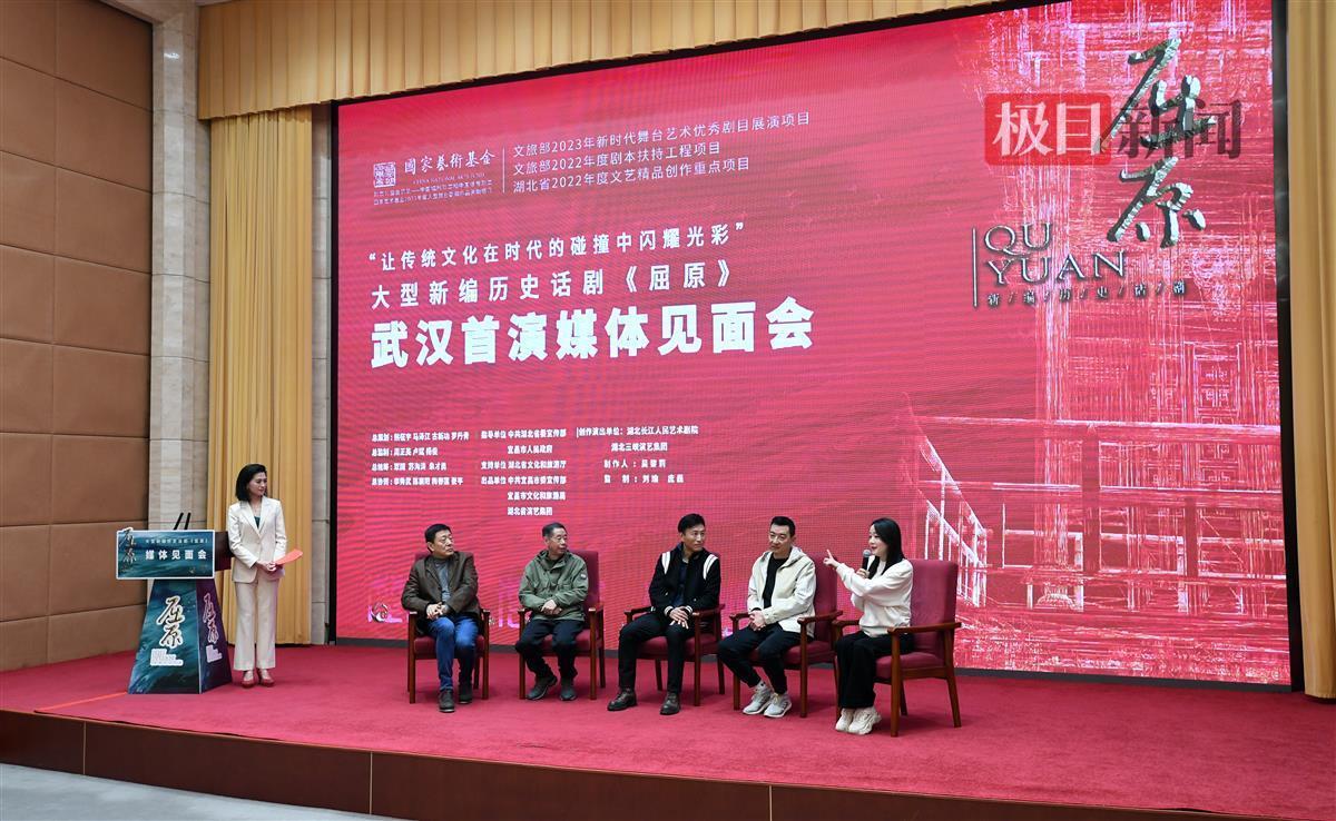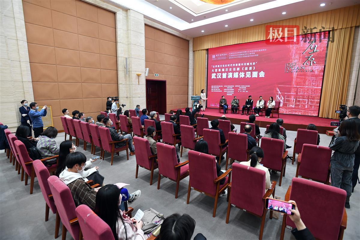 3月13日下午,该剧媒体见面会以“让传统文化在时代的碰撞中闪耀光彩”为主题,在武汉洪山礼堂举行。编剧黄维若,导演郭小男,主演王洛勇、郝平、王一楠等主创人员亲临现场,分享《屈原》创作故事。