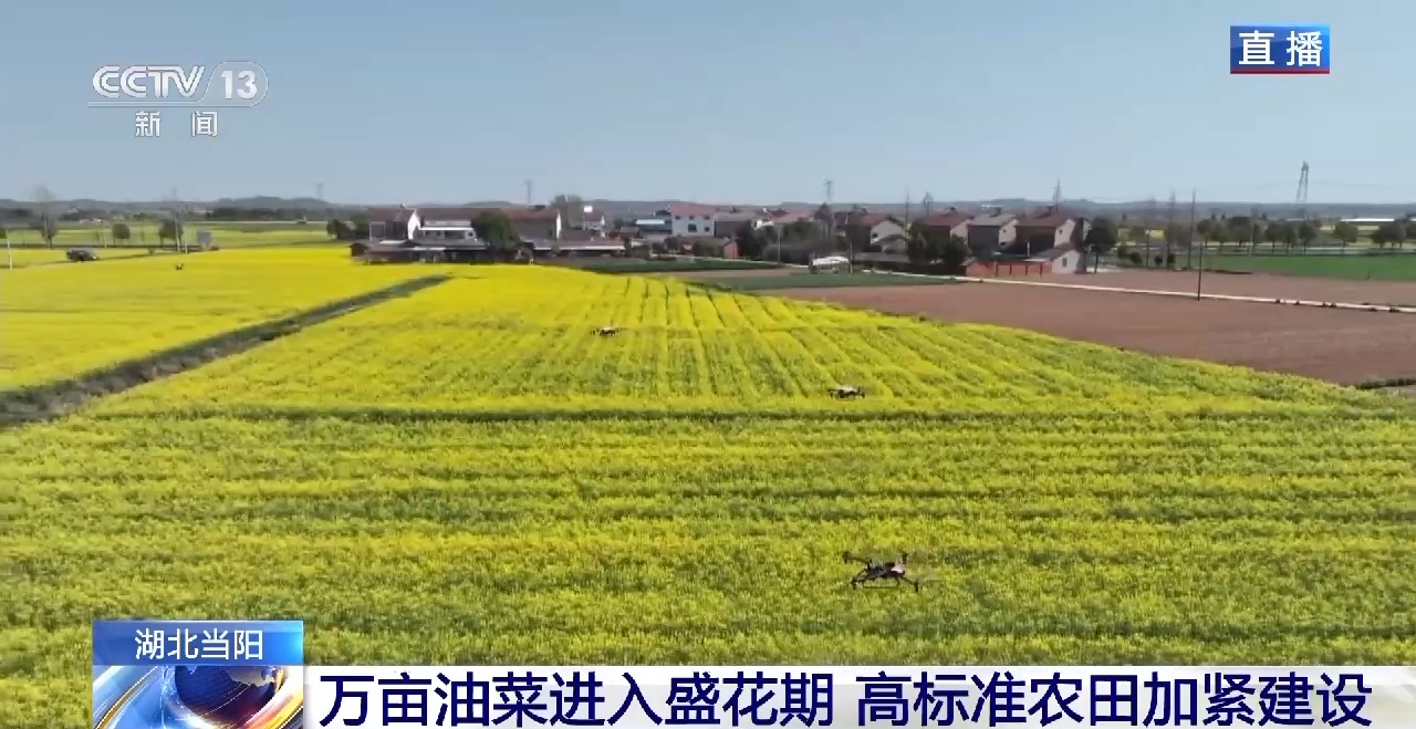 春暖花开,眼下长江流域的油菜花正陆续迎来盛花期,在湖北省当阳市去年刚刚验收交付的高标准农田里,如今已是满目金黄香百里。