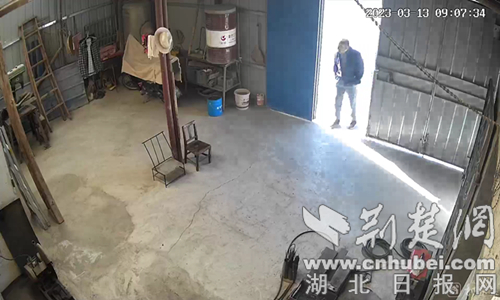 民警通过勘查被盗现场、询问周边居民、调取附近监控,发现可能被一男子盗走。从监控视频中看到,一身穿深色夹克男子,贼头贼脑地出入多个农户家中,他每次进入时就左顾右盼地打探环境,当看到屋内有人时就立即离开,而在进入曾某家中后,他再出来时就一路小跑地离开了此地。