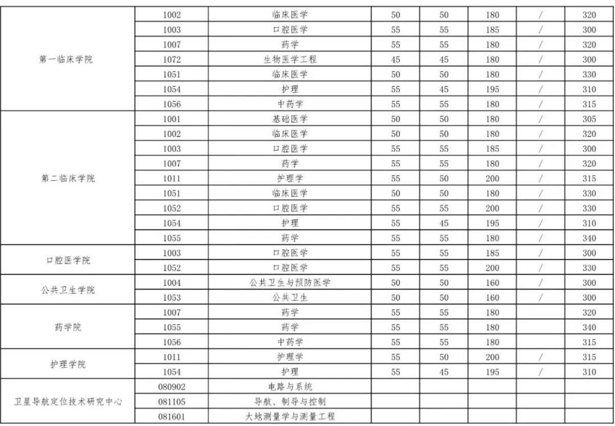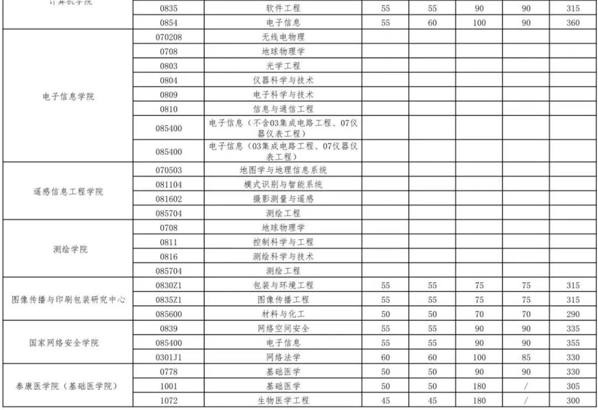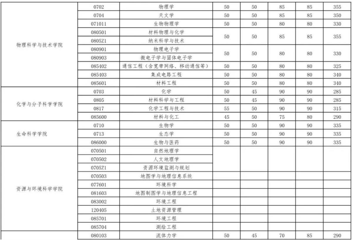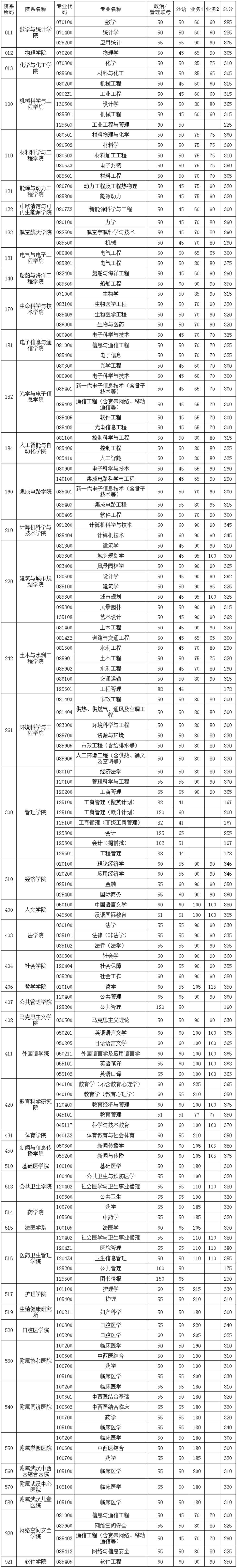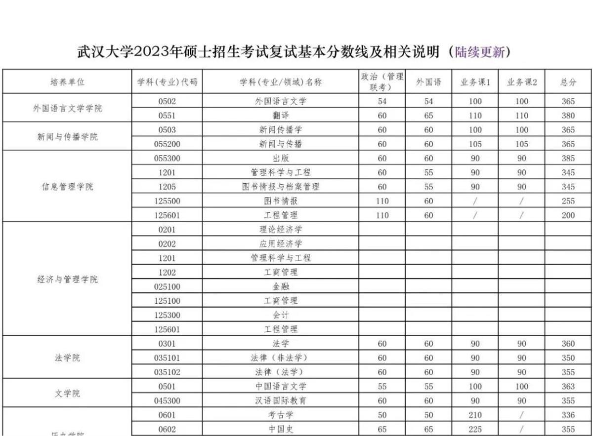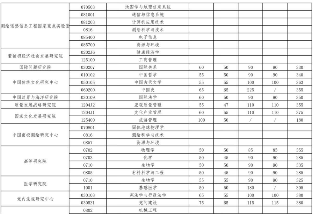 以下为武汉大学复试分数线