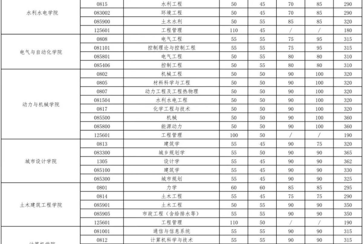 以下为华中科技大学复试分数线