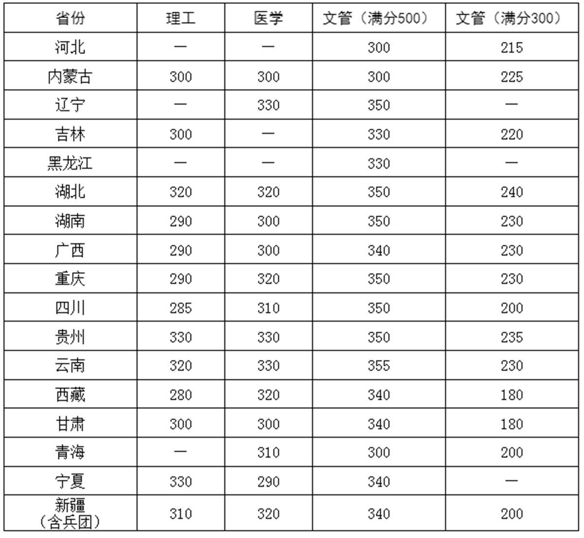 4,少数民族骨干计划(分省)分数线