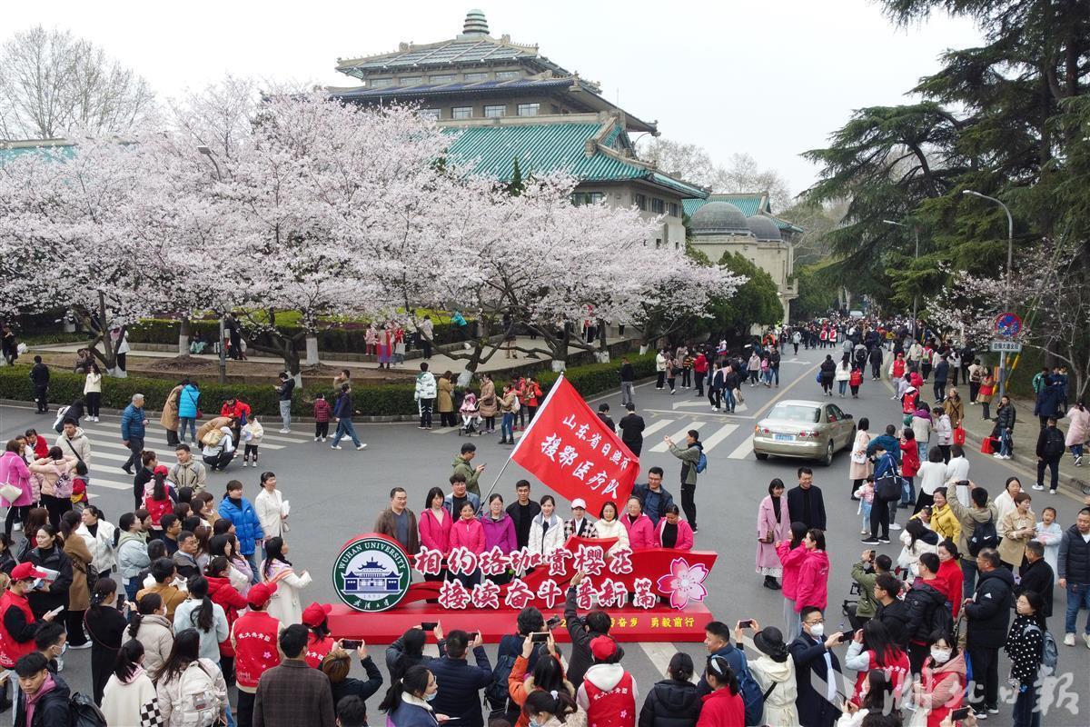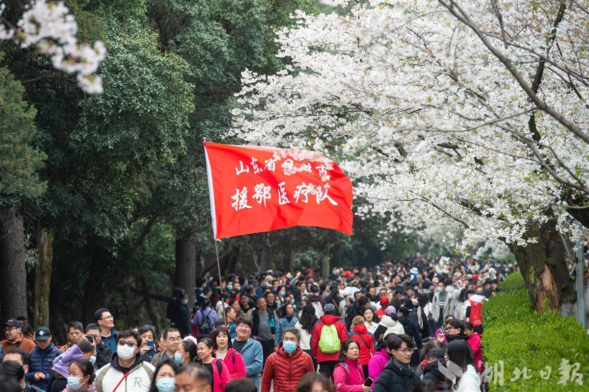 3月18日,武汉大学2023抗疫医护赏樱专场,66支援鄂医疗队,16000余名抗疫英雄及家人相聚珞珈山下,亲眼见证这个他们亲手奋战出来的春天。