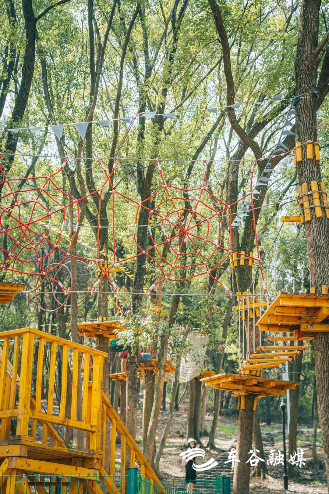 在树木错落的丛林中攀岩、探险,尽情感受春日的盎然,欢声笑语响彻整片绿野。