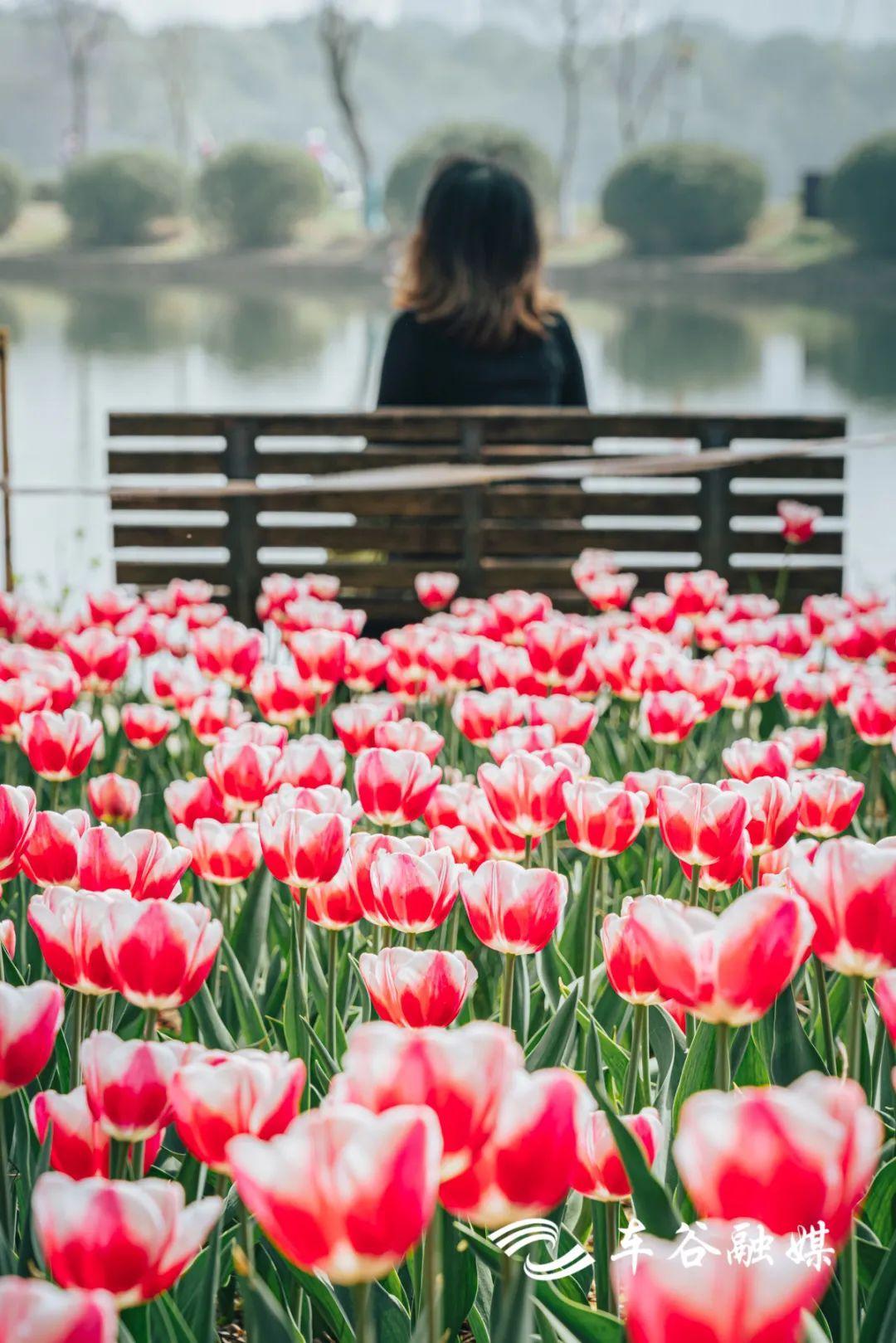 汤湖公园凭借两万朵怒放的郁金香,一举拿下了多个网络平台的热搜。