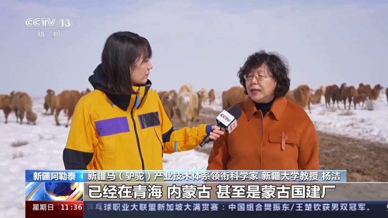 新疆马(驴驼)产业技术体系领衔科学家 新疆大学教授 杨洁:我们疆内有一些企业,已经在青海、内蒙古甚至是蒙古国、哈萨克斯坦建厂,成为农牧民乡村振兴的支柱产业,同时希望我们这个技术能够辐射中亚,辐射“一带一路”沿线国家。