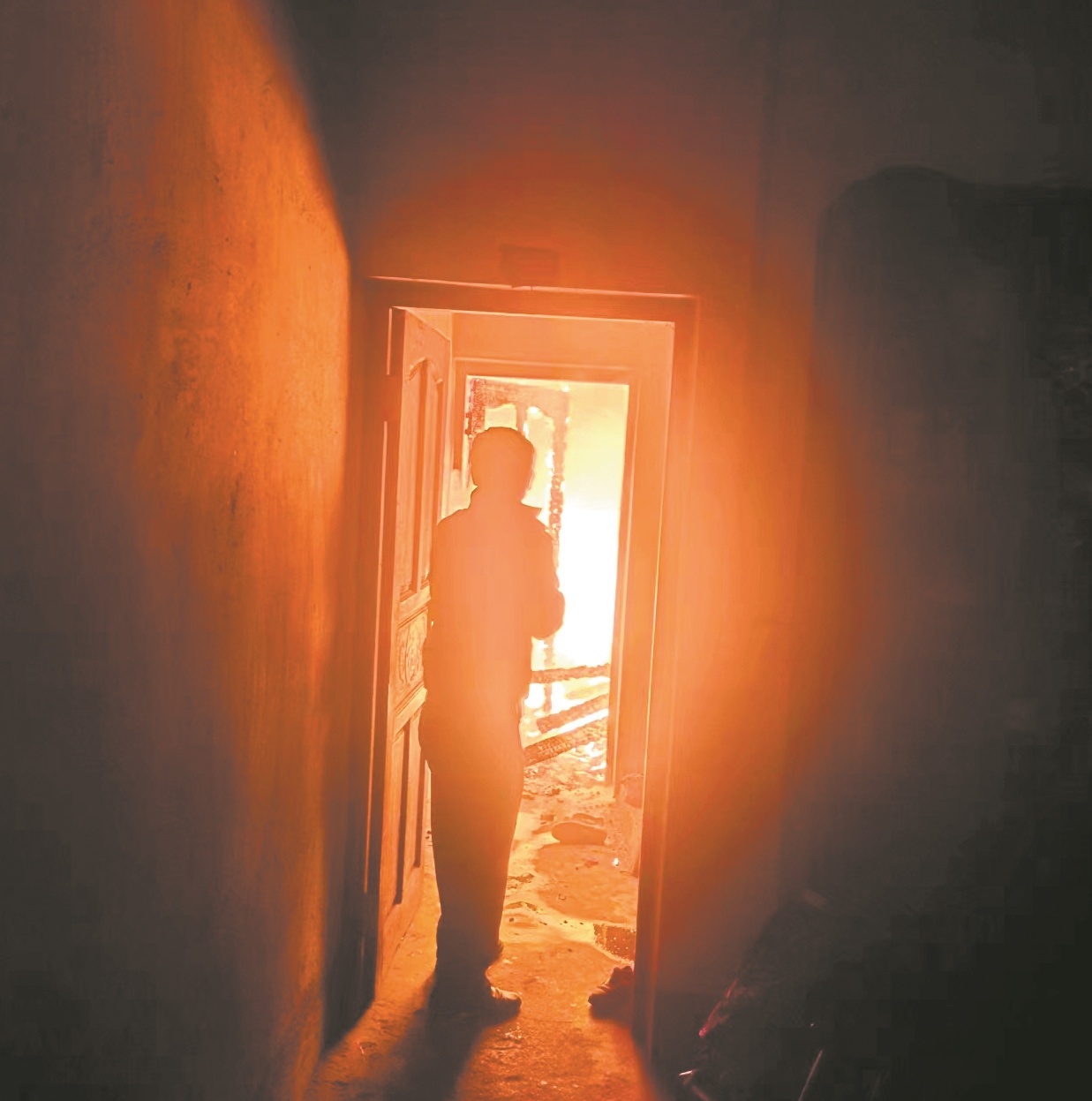 生命安全高于一切!舒诚树来不及多想,迅速从屋外的水龙头接来一盆冷水,从头淋下打湿衣服,奋不顾身冲进了火海,一边用手捂着鼻子,一边弓着身子用眼睛余光搜索着屋内的孩子。