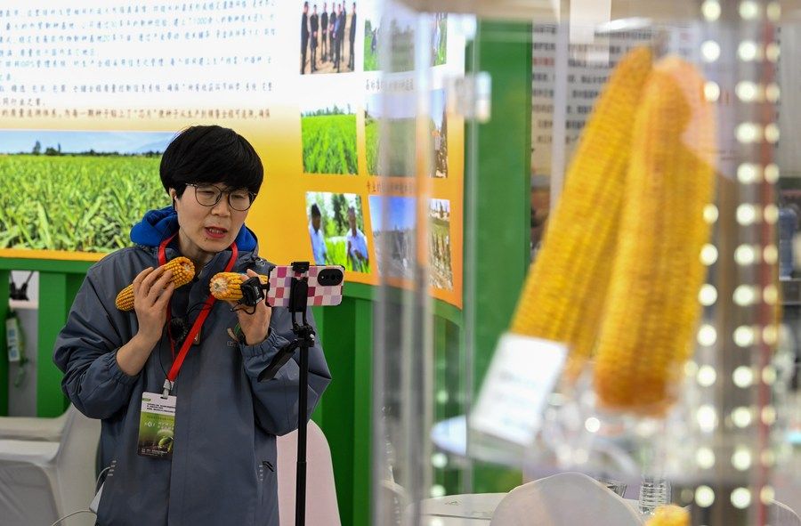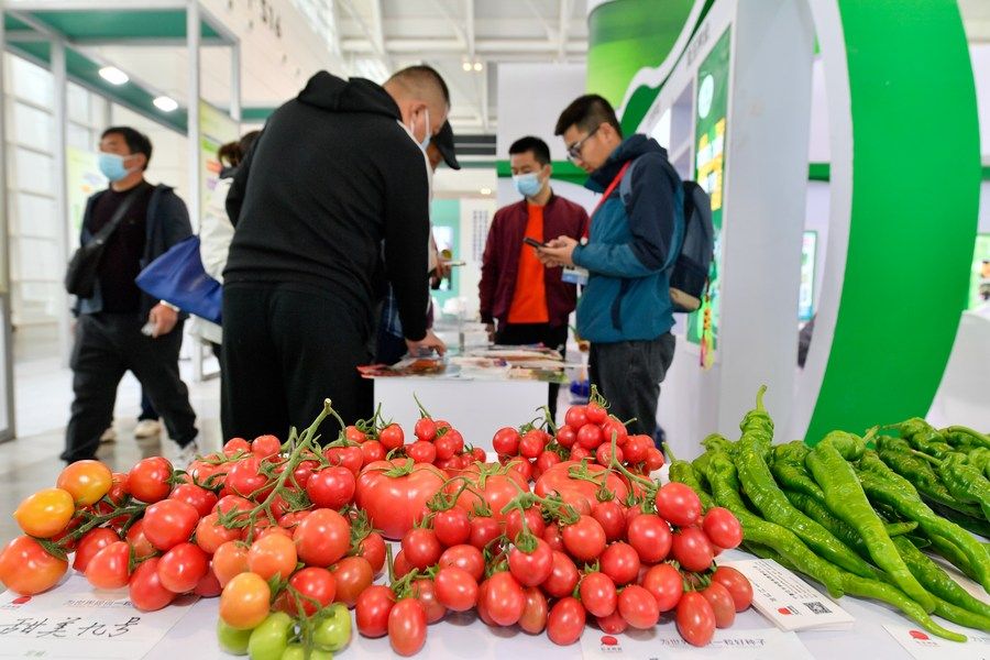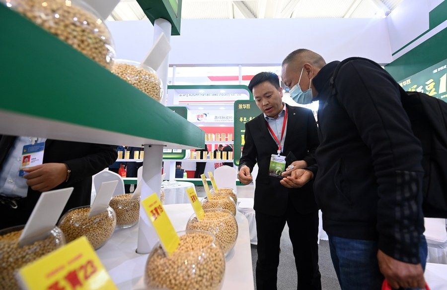 3月18日,参观者和展商在展会上交流。当日,第十四届中国国际种业博览会暨第十九届全国种子信息交流与产品交易会在天津市开幕。新华社记者 赵子硕 摄