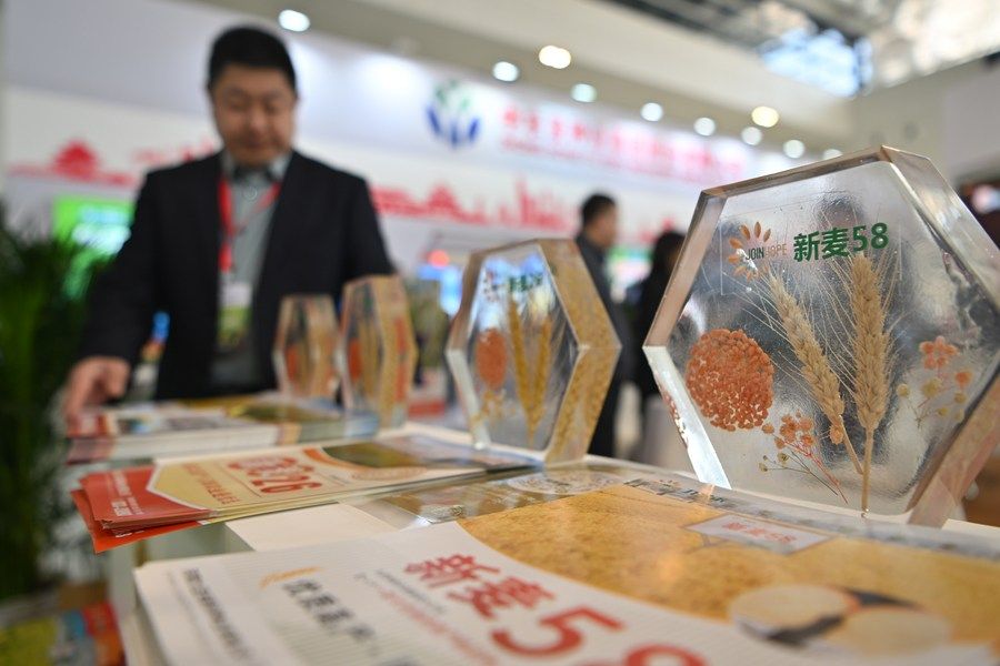 这是在展会上拍摄的小麦种子展示品(3月18日摄)。新华社记者 李然 摄