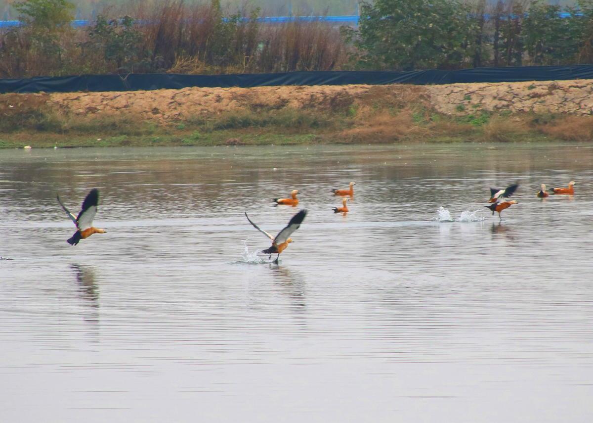 近些天,倒春寒让这个春天开始泛起阵阵寒意。春江水暖鸭先知,寒冷的气候,挡不住鸟儿入水嬉戏。在朱湖国家湿地公园,成群的赤麻鸭欢乐地在河面上嬉戏着,打闹着,时而成群结队地觅食,时而在水面上翩翩起舞,时而突然惊起在天空中飞来旋去。鸟儿和周边的绿树清水,构成一幅生机勃勃、和谐美丽的自然生态画卷。