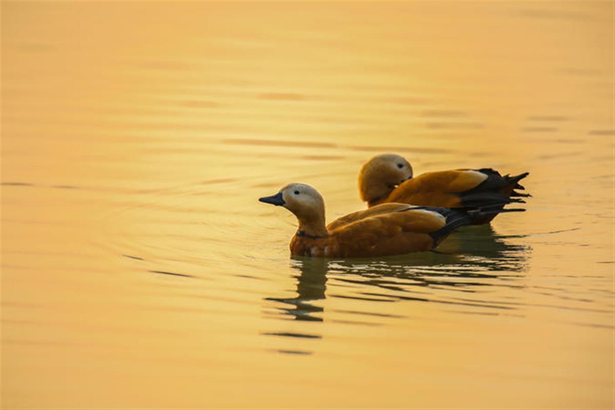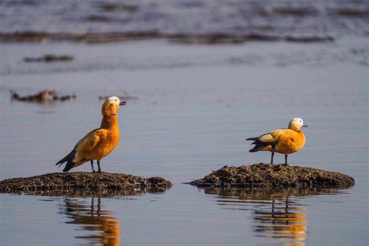 赤麻鸭是迁徙性鸟类,主要繁殖于欧洲东南部、地中海沿岸、非洲西北部、亚洲中部和东部,越冬在中国、日本、中南半岛、非洲尼罗河流域等地。每年10月末至11月初相继从繁殖地迁往越冬地。而朱湖湿地,就是它们近年来相中的一块“洞天福地”,大批赤麻鸭已经连续3年在朱湖湿地越冬“度假”。