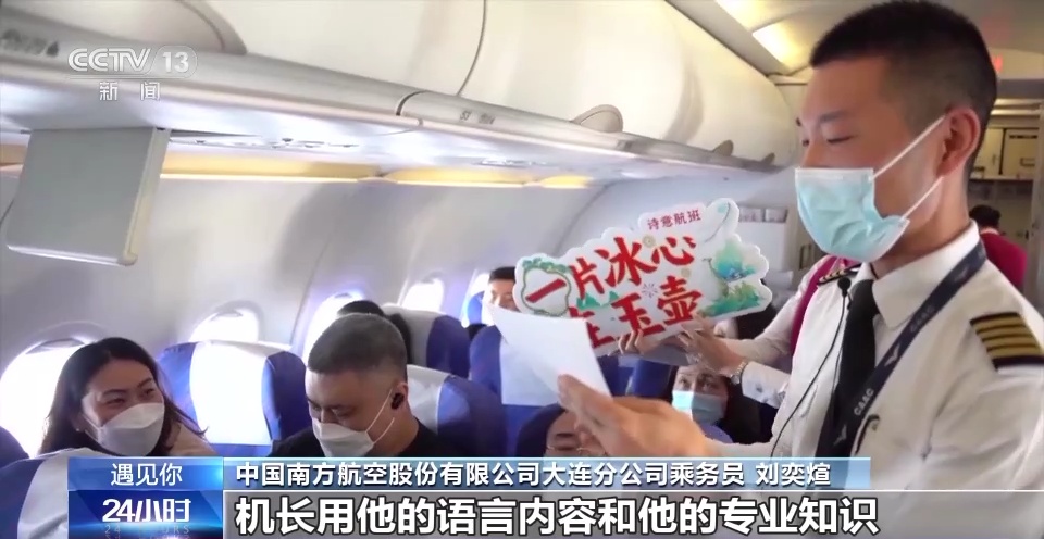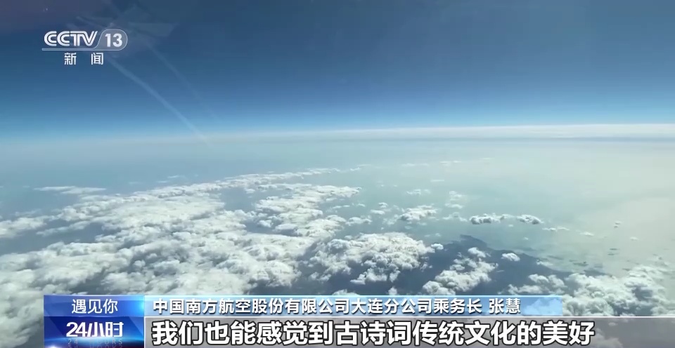 中国南方航空股份有限公司大连分公司乘务长 张慧:在这么现代化的交通工具上,我们也能感觉到古诗词传统文化的美好,我觉得这才是真正的诗和远方。