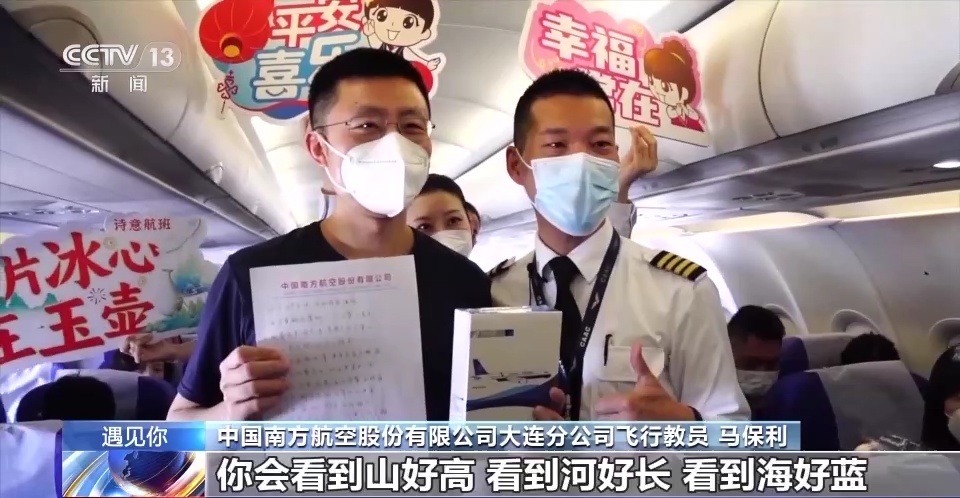 中国南方航空股份有限公司大连分公司乘务员 刘奕煊:机长用他的语言内容和他的专业知识,能够信手拈来好多的诗词。