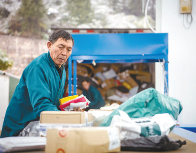 湖北省恩施土家族苗族自治州宣恩县,中国邮政宣恩分公司分拣员在分拣邮件。