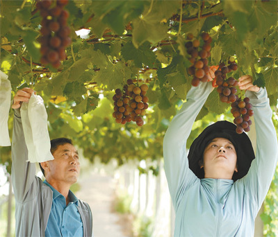 江苏省句容市茅山镇丁庄村,葡萄种植能手在采摘葡萄。