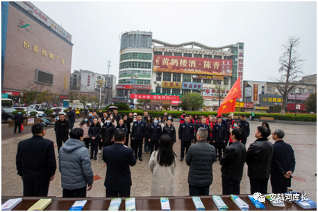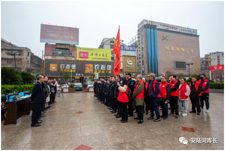 活动当日,34名民间河库长高举“民间河库长”队旗,身着印有“民间河库长”字样的红马甲,首先参加了由安陆市水利和湖泊局在太白广场举行的“世界水日”、“中国水周”宣传启动仪式,现场向市民发放《中华人民共和国水法》、《长江保护法》《孝感市府澴河保护条例》等法律法规手册500余份。随后集体乘车前往烟店镇开展宣传。