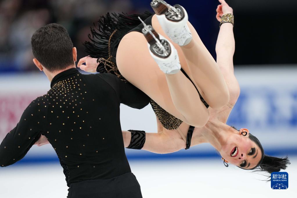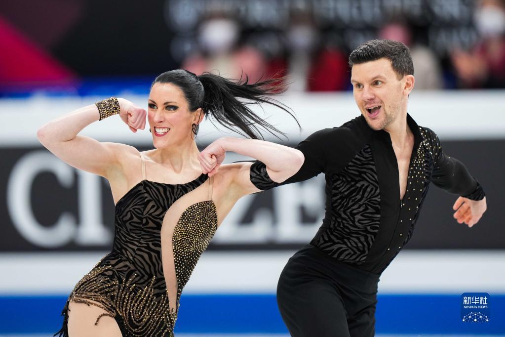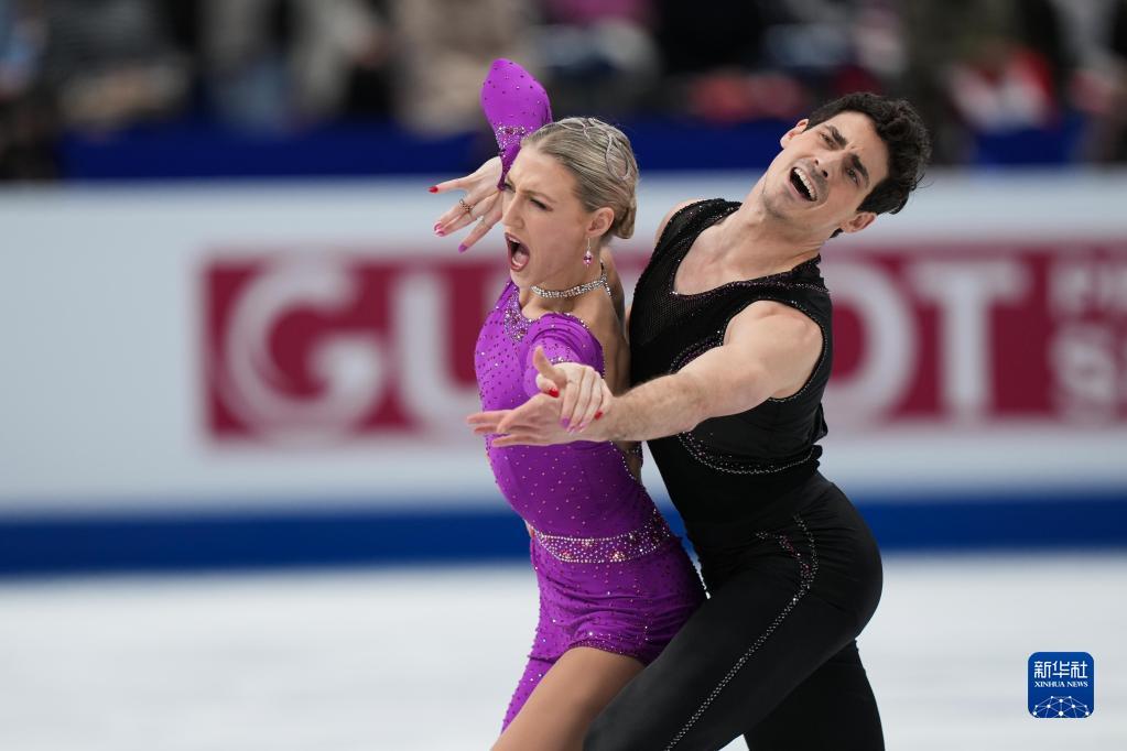 3月24日,加拿大组合吉勒斯(左)/波里尔在比赛中。他们以87.34分获得冰舞韵律舞第三名。新华社记者 张笑宇 摄