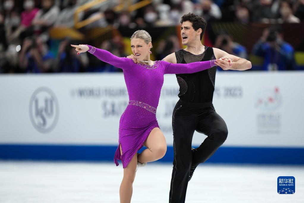 当日,2023年世界花样滑冰锦标赛冰舞韵律舞比赛在日本埼玉举行。