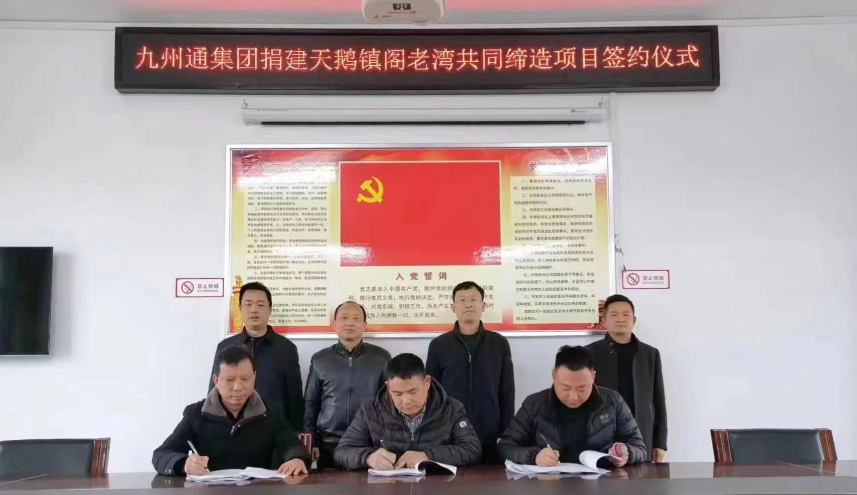 3月21日,九州通医药集团股份有限公司代表专程来到应城市天鹅镇,捐建265万元用于天鹅街道社区阁老湾共同缔造项目建设,并进行了签约仪式。