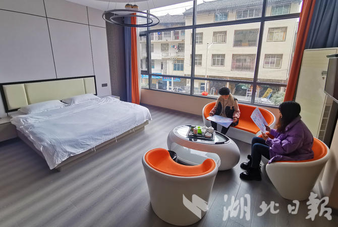 在民宿奖励政策的激励下,大支坪集镇一酒店老板吴庆朋出去考察后,回来投资100多万元,将旧酒店改成特色民宿。“2013年,我投资200多万元,建设了集镇最早的一家酒店,那时算是最好的,随着酒店设施设备老化,来酒店住宿的客人越来越少,现在通过全方位改造,马桶、空调、窗帘都搭载了智能机器人,只需语音对话,即可享受星级服务。”吴庆朋说。