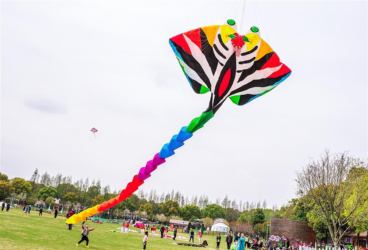 3月25日,武汉新洲区香草伊甸园景区大草坪上,空中各色风筝“筝”奇斗艳,地上游人相互追逐,该景区首届巨型风筝节正在举行。活动现场,60多名风筝大师竞技,这些造型栩栩如生、色彩绚丽斑斓的巨型风筝,成为蓝天上一道亮丽的风景线。