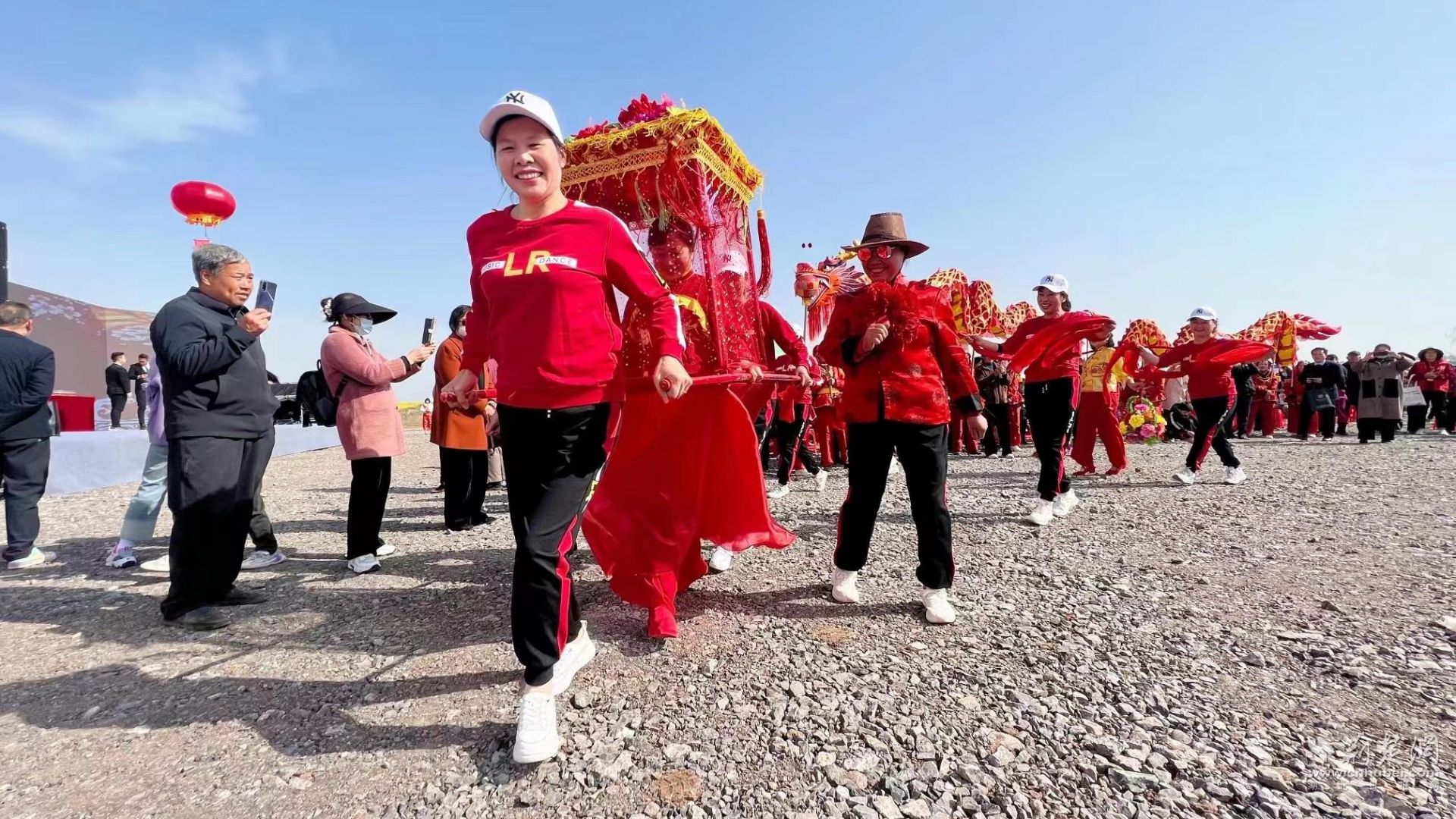 启动仪式开始前,牌楼镇民俗展演舞龙、采莲船、十班家什、抬花轿、蚌壳精暖场助兴,舞蹈《盛世花开》拉开了活动序幕。