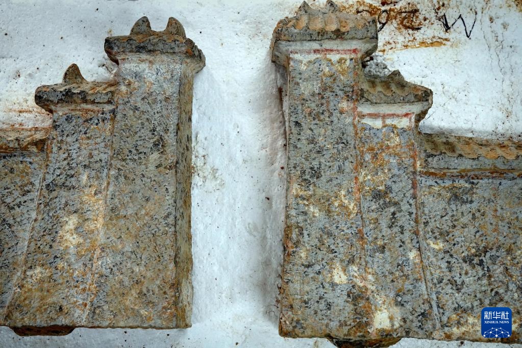 这是洛阳孟津朱仓北朝墓内发现的石阙(3月15日摄)。