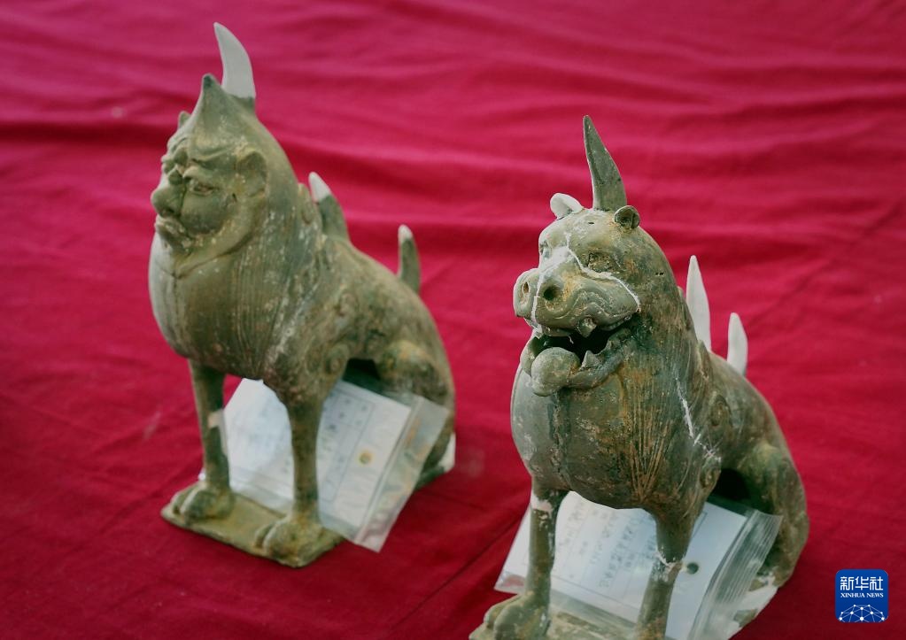 这是洛阳孟津朱仓北朝墓内出土的陶镇墓兽(3月15日摄)。
