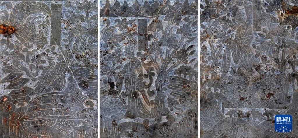 这是洛阳孟津朱仓北朝墓内发现的围屏石棺床石屏风上的图像(拼版照片,3月15日摄)。