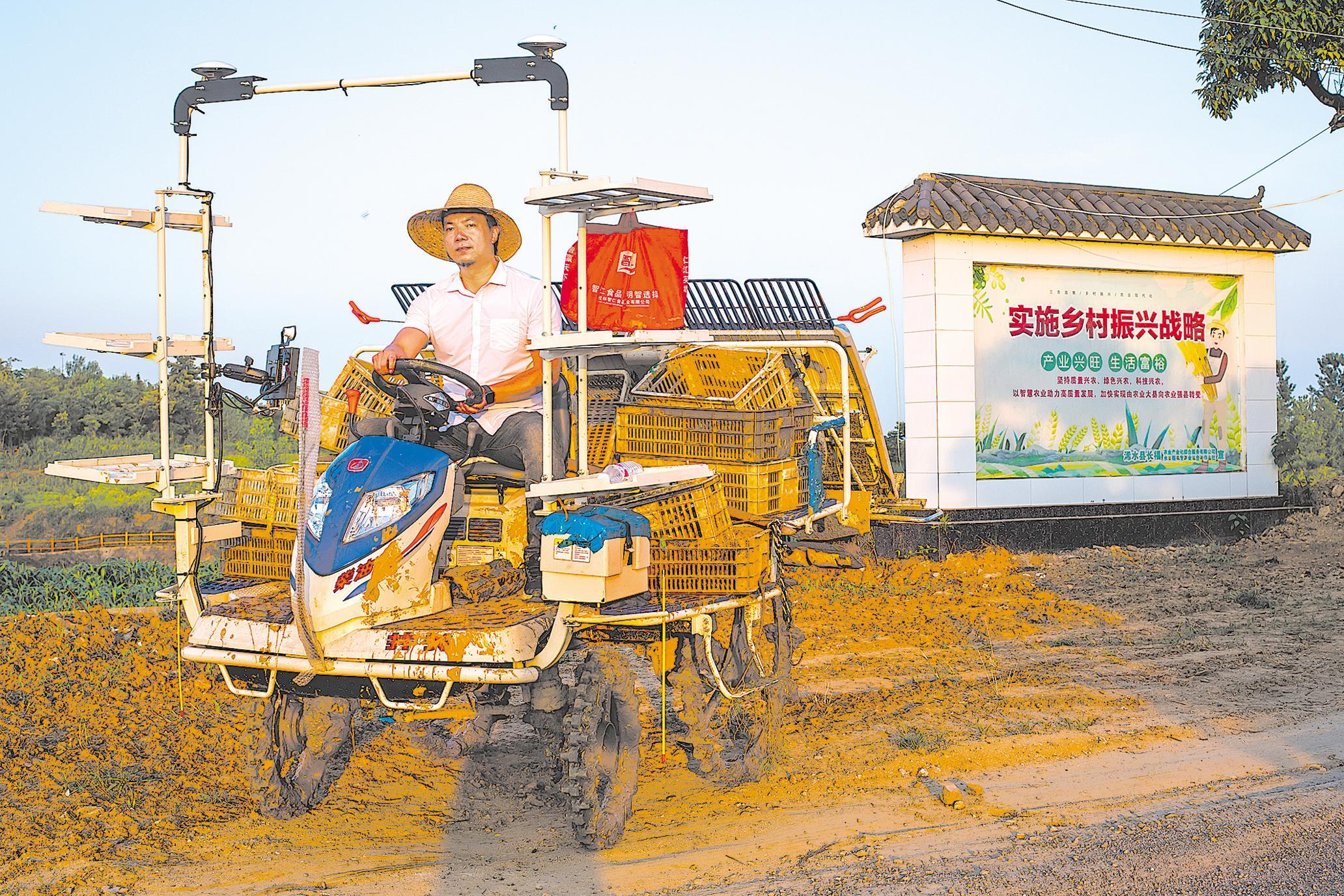 2022年6月14日,潘新星在学开农业机械。他成为“新农人”后,开始钻研农机技术,建设智慧农业。