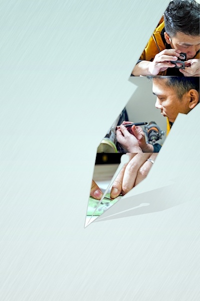 一盏台灯在堆满金属工具的工作台上兀自亮着,林澳先将磨得褪了色的工作镜,对准钢笔笔尖,盯着看了几秒后,用手反复摩挲笔尖。变形的笔尖经他一拨弄,水就畅了,笔也润了。
