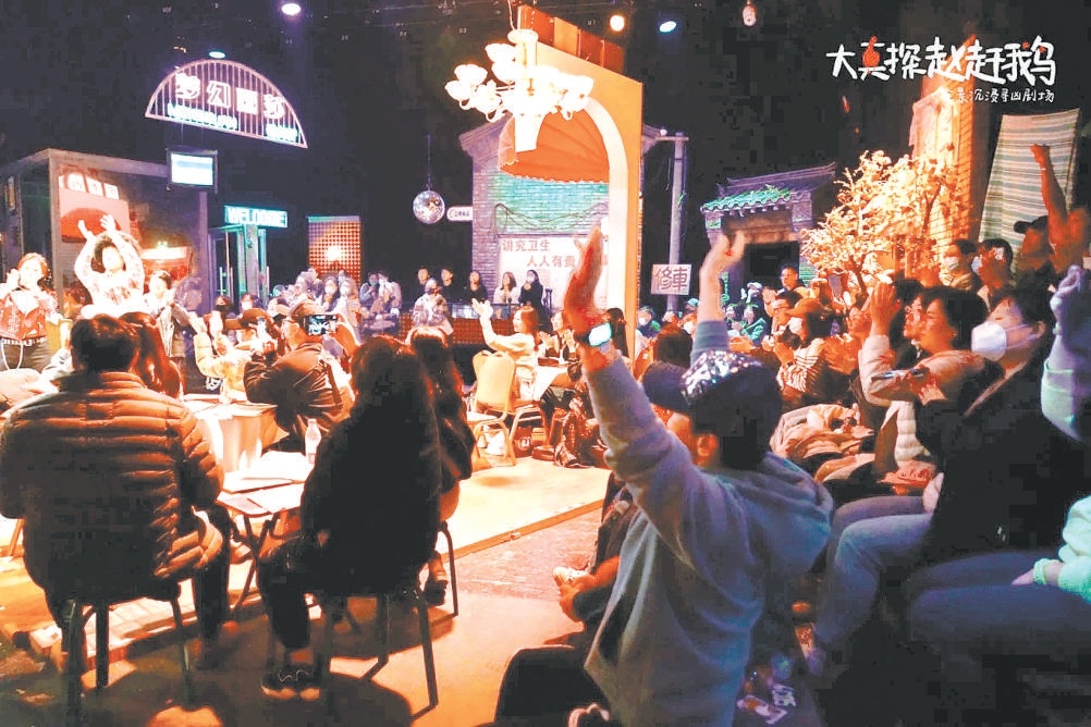 北京东城美术馆后街的77剧场中,全景沉浸剧场《大真探赵赶鹅》让观众置身于上世纪八九十年代的北京胡同;隆福寺大麦演艺新空间里,沉浸式互动戏剧《现在开市》则让观众瞬间变身“银行家”;前门颜料会馆古香古色的小剧场里,京韵十足的沉浸式话剧《城南旧事之评书传奇》,让人同时感受古建空间和地域文化;望京“开心麻花·花花世界”戏剧乐园中上演的沉浸互动戏剧《偷心晚宴》,则让观众可以一边看魔术歌舞,一边享受热乎餐食……