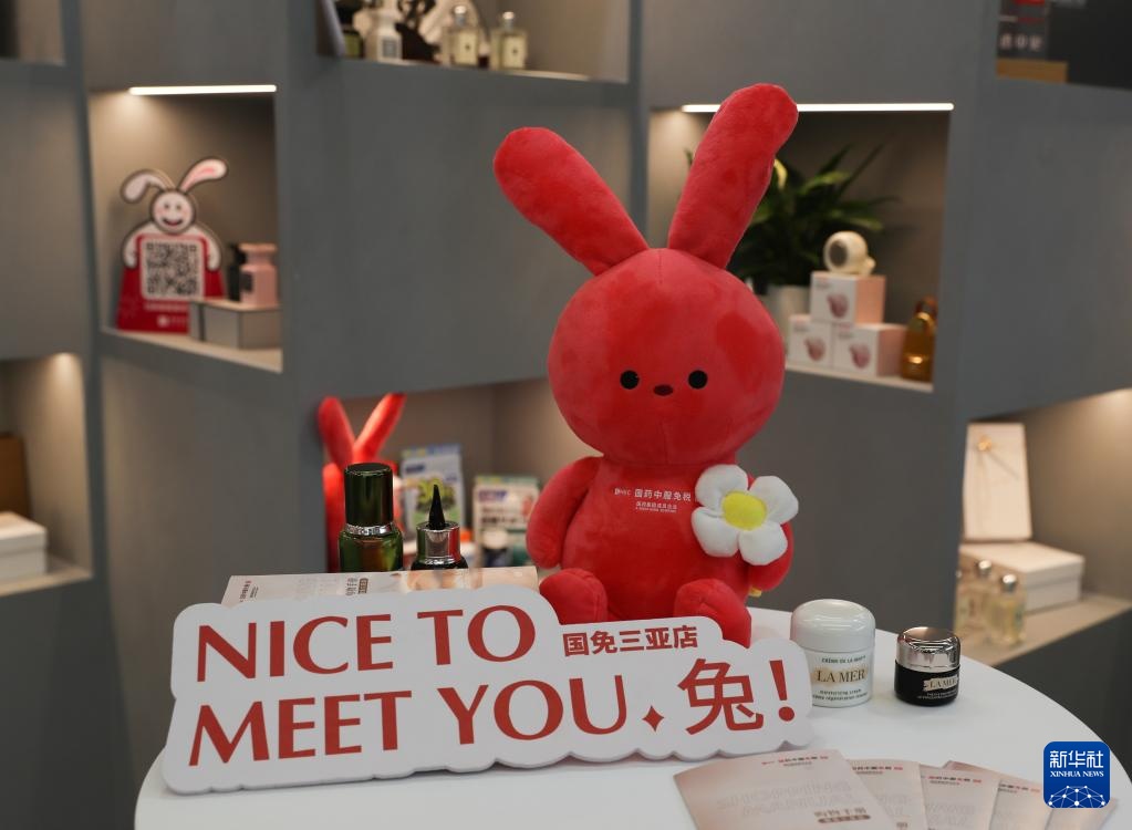 这是在三亚创新发展主题展上拍摄的国药中服免税店展示柜台(3月28日摄)。