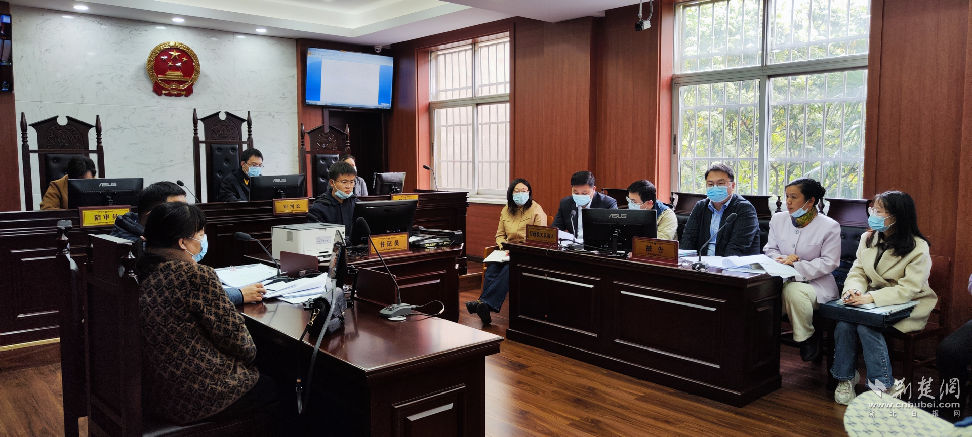 荆楚网(湖北日报网)讯(通讯员桂贵、唐晶晶)为切实提升领导干部法治素养,提升执法人员依法行政和应诉能力,优化法治化营商环境,将江岸区法治政府建设进一步向纵深推进,2023年3月27日下午,武汉市江岸区司法局会同江岸区人民法院、江岸区城市管理执法局组织开展行政机关负责人出庭应诉、工作人员旁听、专家点评“三合一”活动。区城管局、区应急管理局、区司法局、后湖街道等单位工作人员参加庭审旁听。