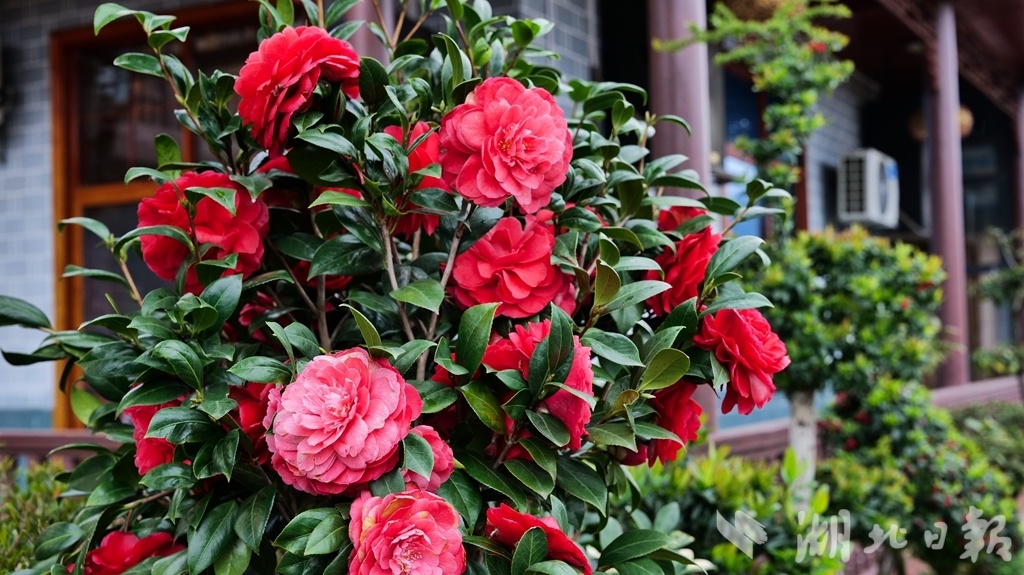 花姿绰约,漫山明艳。3月28日,建始县三里乡藤茶基地四季茶花竞相绽放,茶花点缀在绿叶之间,红的似火,粉的似霞。