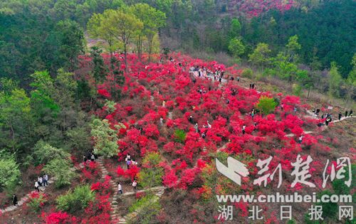 开幕仪式后,众人前往杜鹃花海游玩打卡。一丛丛、一片片杜鹃花疏密有致。千姿百态的花朵在阳光下生机盎然,次第绽放。现场人头攒动,游客穿梭在姹紫嫣红的花海中流连忘返,纷纷用手机定格娇姿倩影。“我是从外地慕名而来的,和朋友一起过来游玩赏花,这边的杜鹃花开的非常热烈,景观也非常优美,让人心情愉快。”来自武汉的吴女士说道。