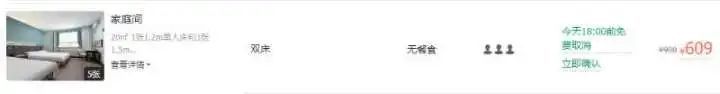 工作人员建议,要么再开一间房,要么订酒店的家庭房型,房内有一大(1.5米)一小(1.2米)两张床,当然费用也要比普通标间贵上不少。记者通过某电商平台查询发现,该酒店“标准双床间”的价格为432元,“家庭房”的价格为609元,均不含餐食。