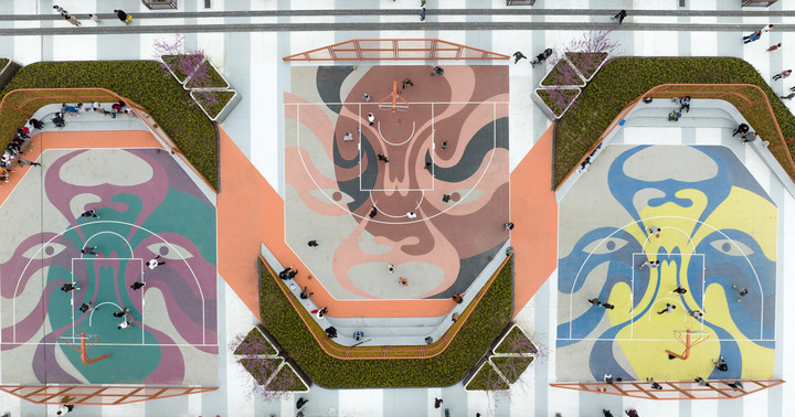 球场地面的脸谱来自武汉本地剧种——汉剧