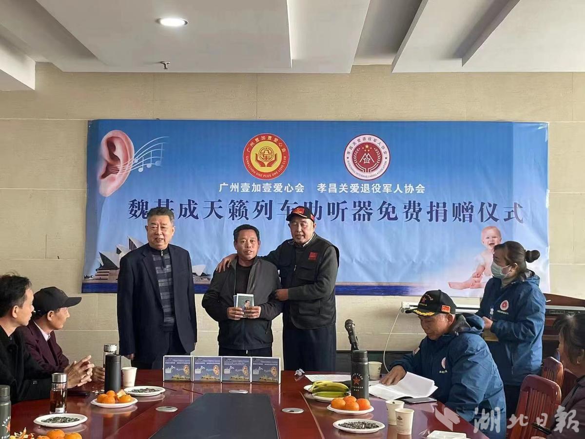 如此温馨的一幕,发生在3月27日上午,孝昌县关爱退役军人协会会长肖延安、余仁俊、张洪颜等在孝昌县十真医院举行了“魏基成天籁列车助听器免费捐赠仪式”。