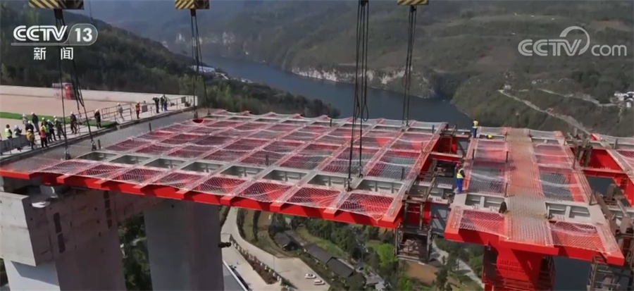 总台记者 马宇涵:我身后是贵州省德余高速乌江特大桥桥梁主体合龙的工作现场,这里正在进行最后的锁定工作。可以从画面里看到,工人师傅正在用螺栓锁定最后一跨桥面梁,这道工序结束之后就标志着大桥桥梁主体部分顺利贯通。建造过程采用了北斗卫星系统、三维激光扫描、数字化预拼装、测量机器人、连续预紧智能千斤顶等科技创新手段,确保施工过程安全可靠,可以实现毫米级的精度控制。