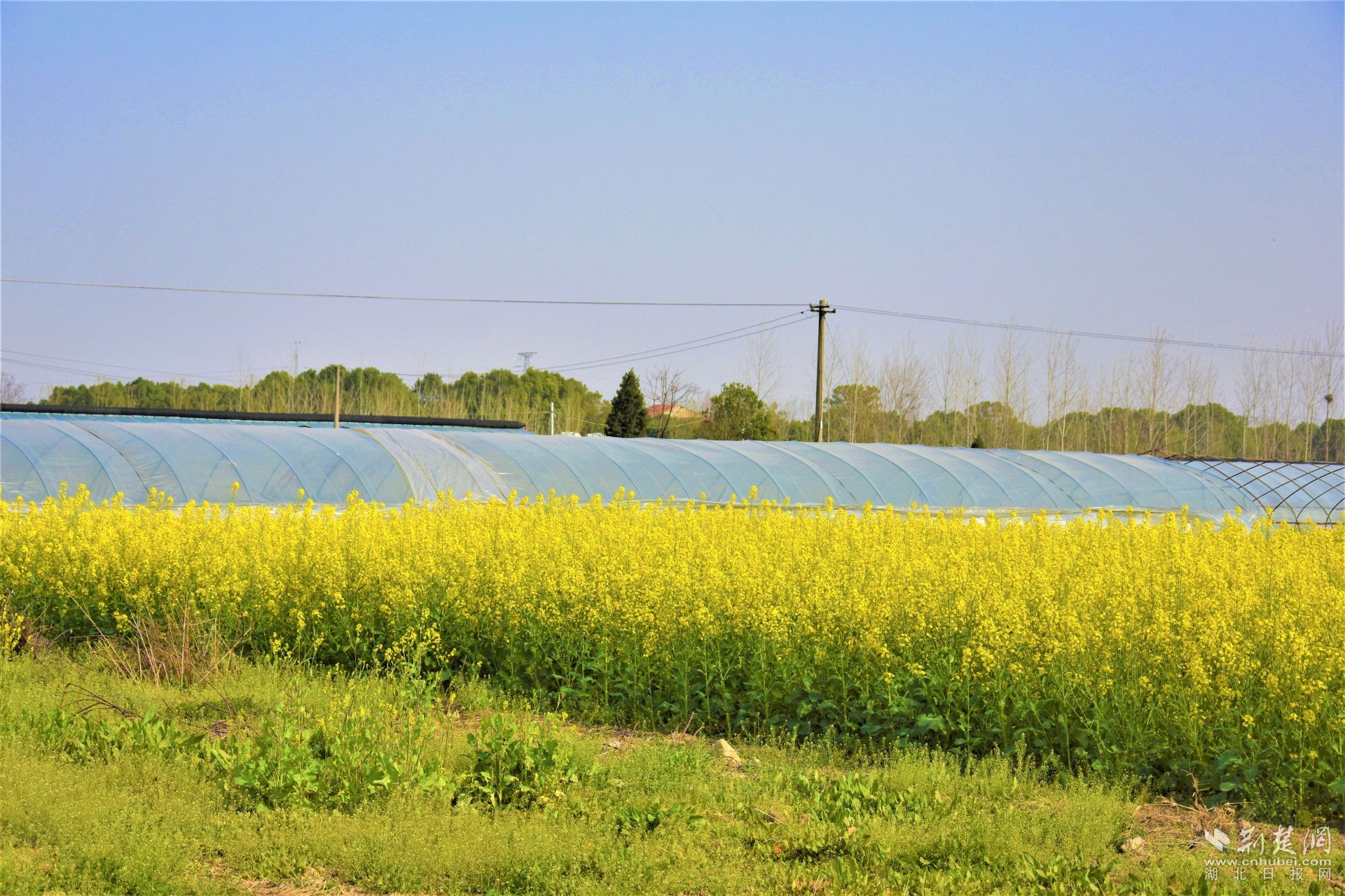 荆楚网(湖北日报网)讯(记者叶修颀 通讯员高玉峰、寇小培)日前,记者来到孝昌县花园镇一致村,眼前一望无际的白色蔬菜大棚和一片片的金黄色油菜花田交相辉映,好似在大地上展开了一幅黄白相间的地毯,让人感受到了村庄田野的春日气息。