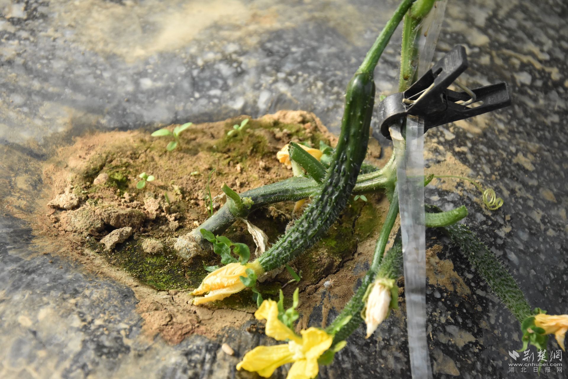 蔬菜大棚里正在生长的小黄瓜。记者 叶修颀 摄