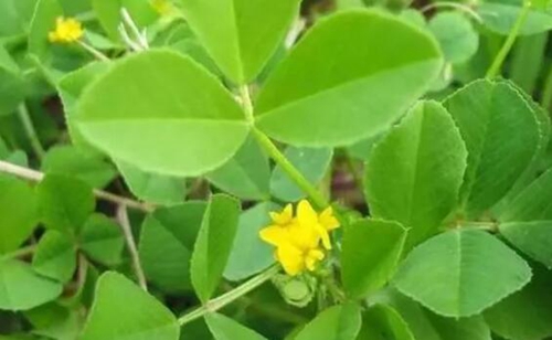 苜蓿,也叫草头,嫩芽可食用,做成青团味道清香,不过颜色不够翠,而是淡绿色。常见的苜蓿有两种,一种开紫花,一种开黄花。江南用来做青团的,一般是开黄花的苜蓿,也叫金花菜、三叶菜,清炒也很鲜美。