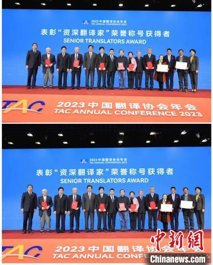 中新网北京4月3日电 (记者 应妮)由中国外文局指导、中国翻译协会主办的2023中国翻译协会年会3日在北京召开。开幕会上举行了“翻译文化终身成就奖”“资深翻译家”“翻译中国外籍翻译家”表彰仪式,11位翻译家荣获“翻译文化终身成就奖”,115名翻译家被授予“资深翻译家”荣誉称号,6位翻译家被授予“翻译中国外籍翻译家”荣誉称号。