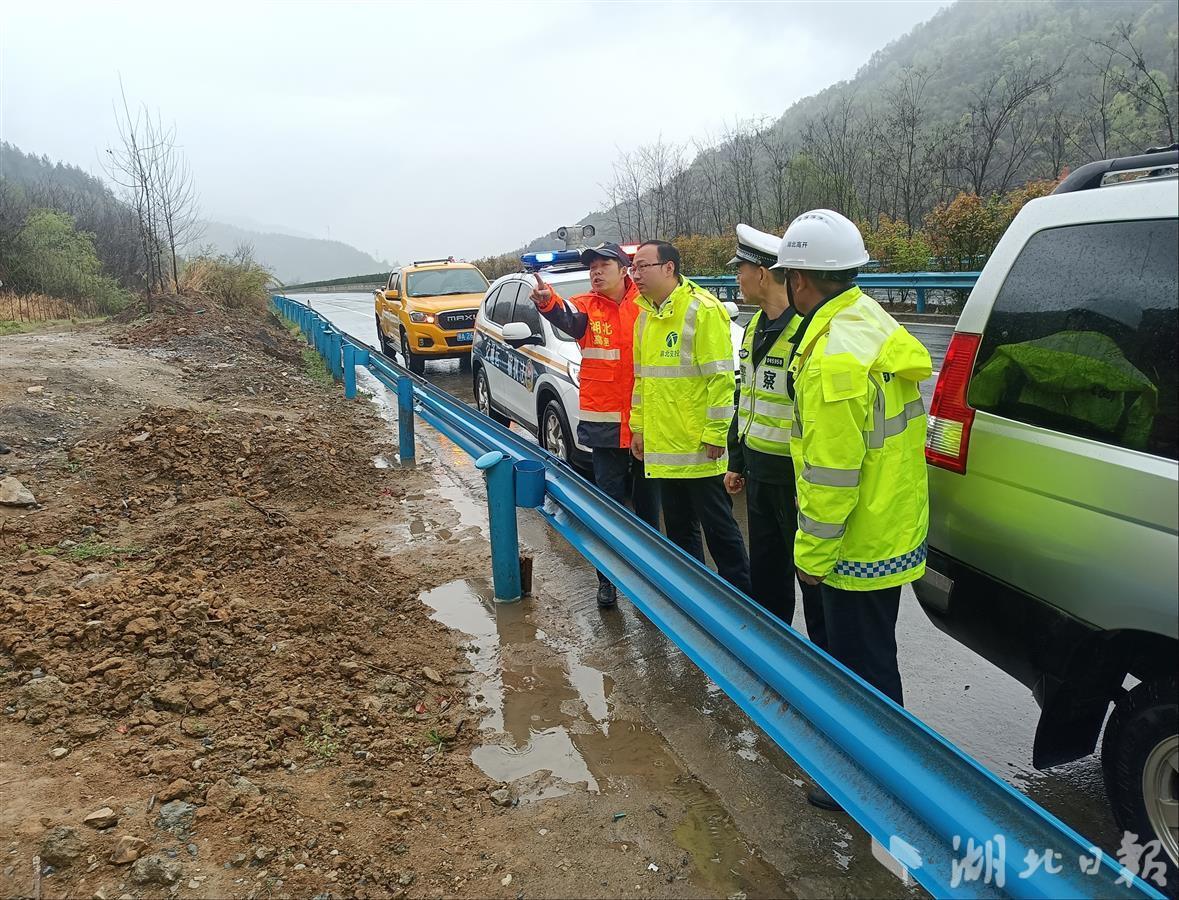 在京港澳高速孝感段,大雨倾盆,湖北交投京珠运营公司养护员段化迅速穿反光雨衣和安全帽,雨衣上别着警示肩灯上路安全巡查。暴风雨拍打脸庞,全身湿透的他,发现有一处路段因堵塞渍水,迅速趴下徒手伸进排水井中,抓出树枝树叶后排水通畅。当天,湖北交投集团高速养护应急保畅人员出动900余人次,上路清理树木倒伏等,并通过无人机加强对桥涵、边坡、隧道等区域的排查,确保隐患查治全覆盖。