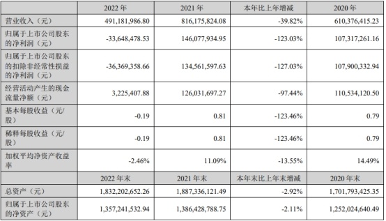 中国经济网北京4月4日讯 吉大正元(003029.SZ)近日发布2022年年度报告,公司2022年实现营业收入4.91亿元,同比下降39.82%;归属于上市公司股东的净利润为-3364.85万元,同比下降123.03%;归属于上市公司股东的扣除非经常性损益的净利润为-3636.94万元,同比下降127.03%;经营活动产生的现金流量净额为322.54万元,同比下降97.44%。