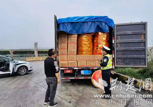 2023年4月2日10时许,钟祥市公安局双河派出所接到线索,称在二广高速钟祥停车区,一辆轻型货车车厢内疑似装有大量烟花爆竹。获悉线索后,双河派出所民警联合高速交警立即前往现场进行检查。
