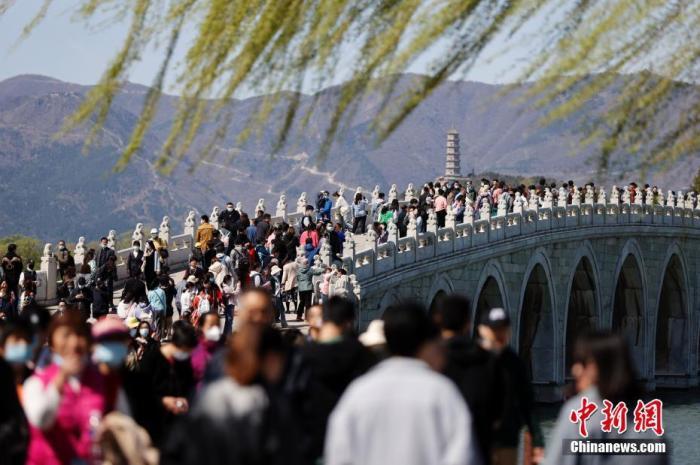 资料图:市民在北京颐和园游览,踏青赏花。中新社记者 盛佳鹏 摄